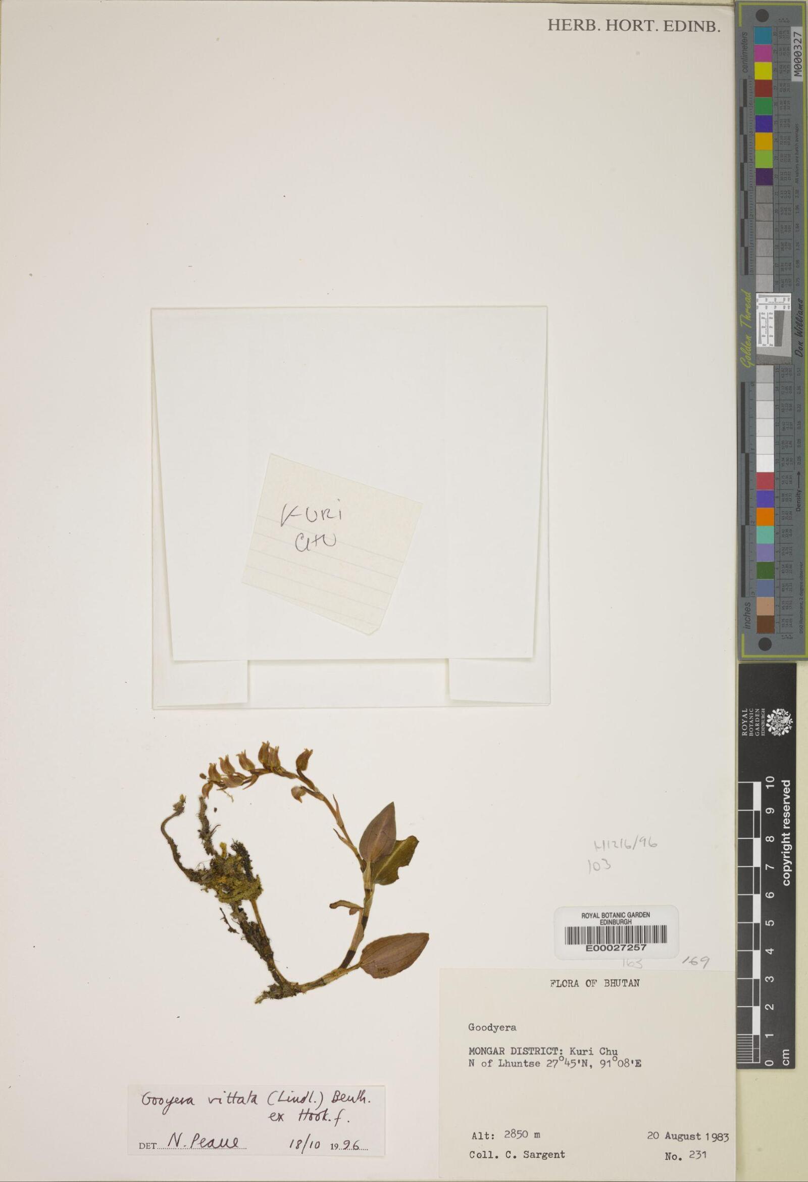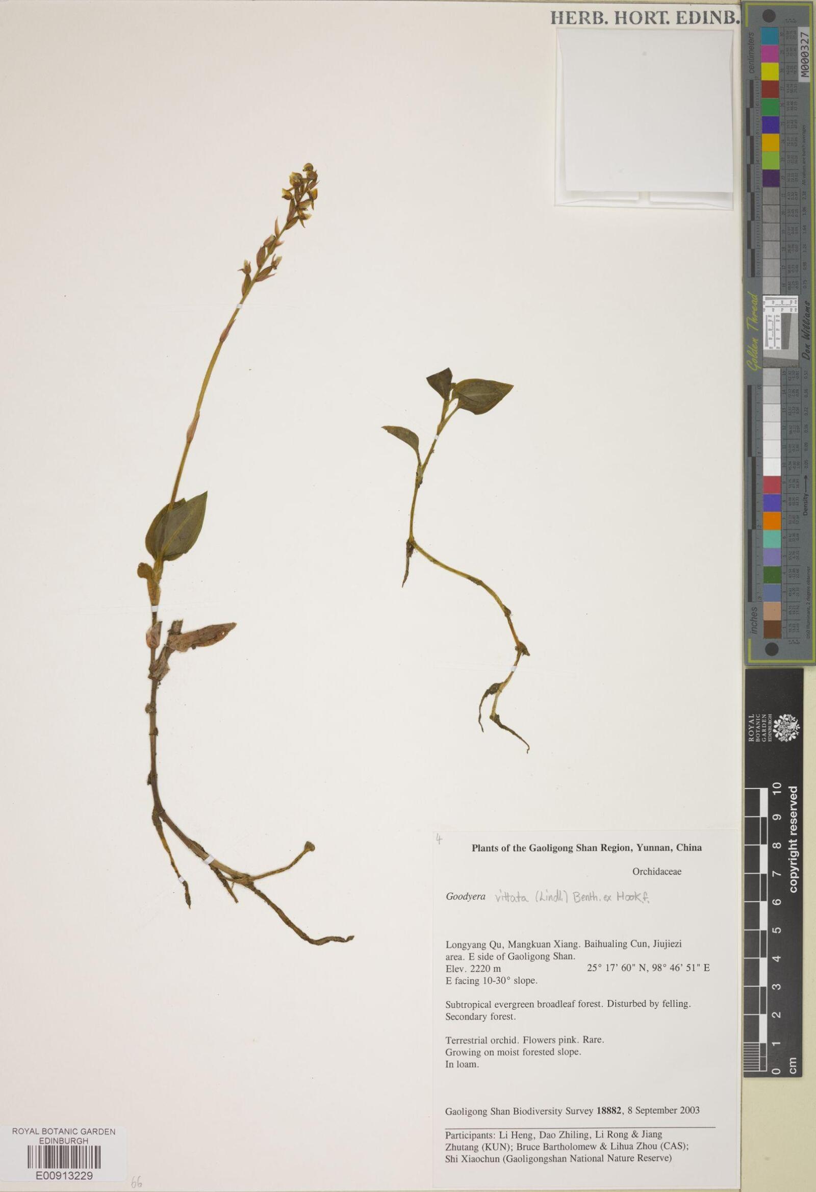 : - Goodyera vittata (Lindl.) Benth. ex Hook.f.