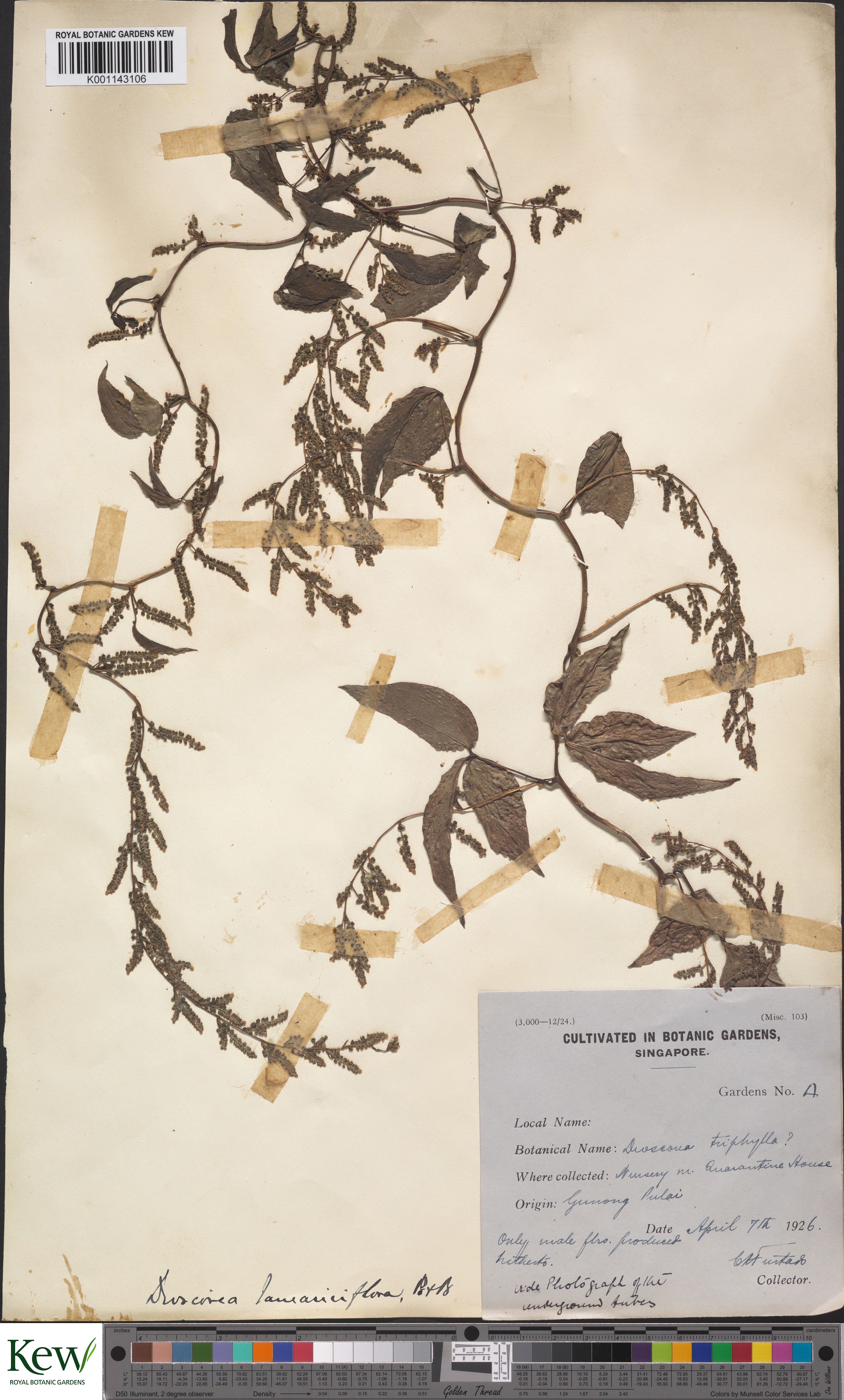 : - Dioscorea tamarisciflora Prain & Burkill