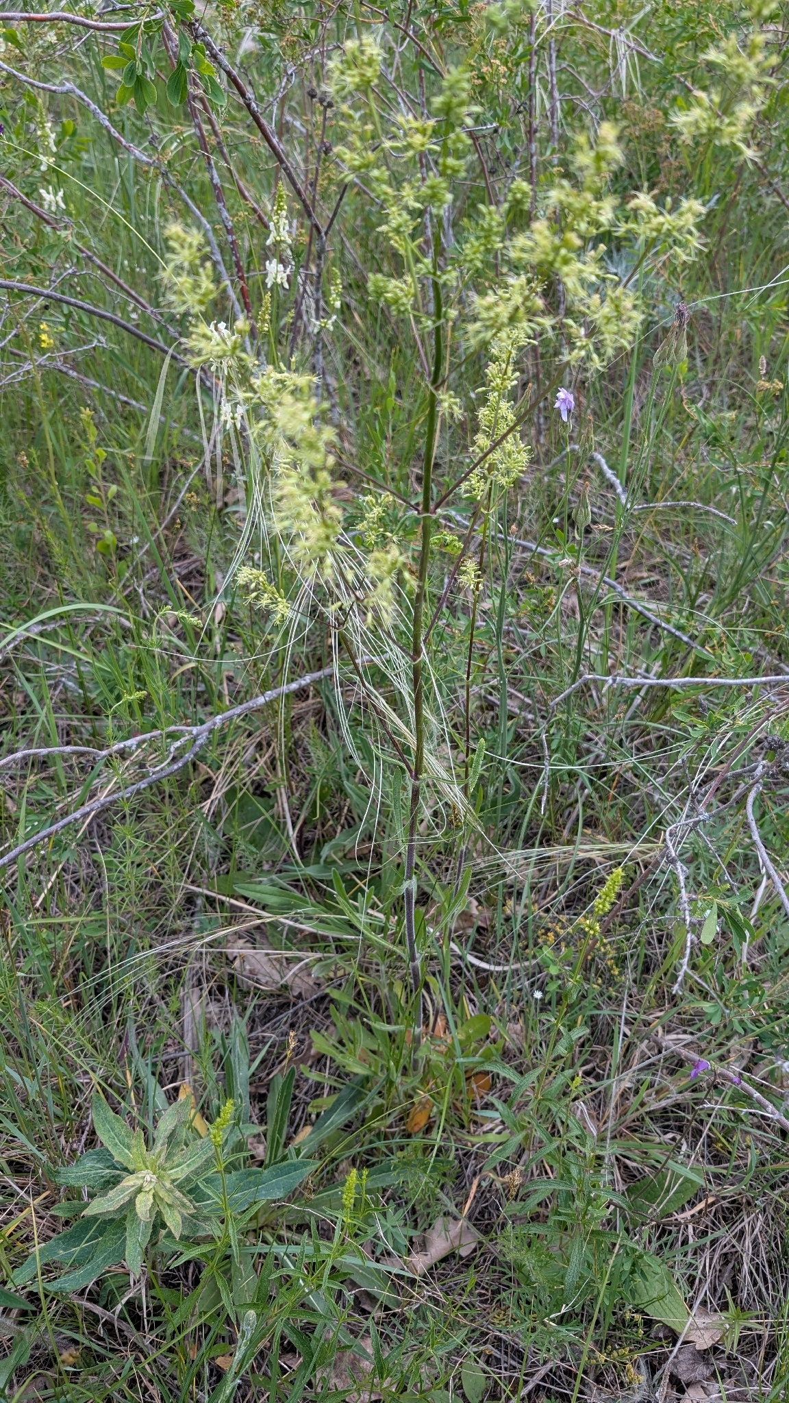 Stengel bzw. Stamm: Zweihäusig, zweijährig ( selten mehrjährig); Stängel bis zu 80 cm, ohne zähe Internodien; ganze Pflanze behaart.