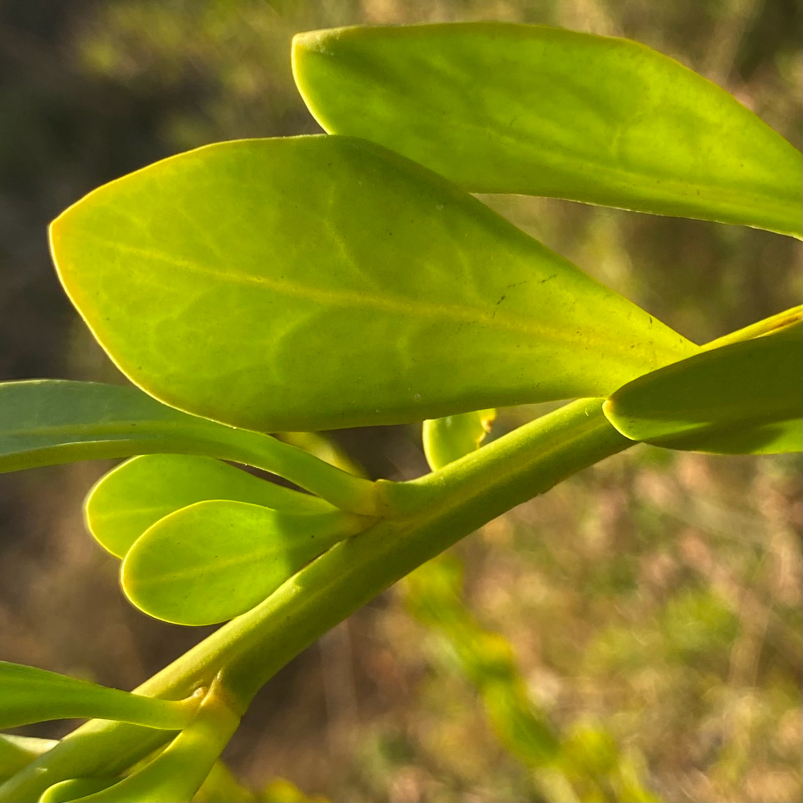Blätter: Umgekehrt-eiförmig bis schmal umgekehrt-eiförmig, manchmal spatelförmig, sitzend oder fast sitzend, 18–65 mm lang, 4–31 mm breit, meist dick und fleischig, ganzrandig; juvenile Blätter können gezähnt sein.