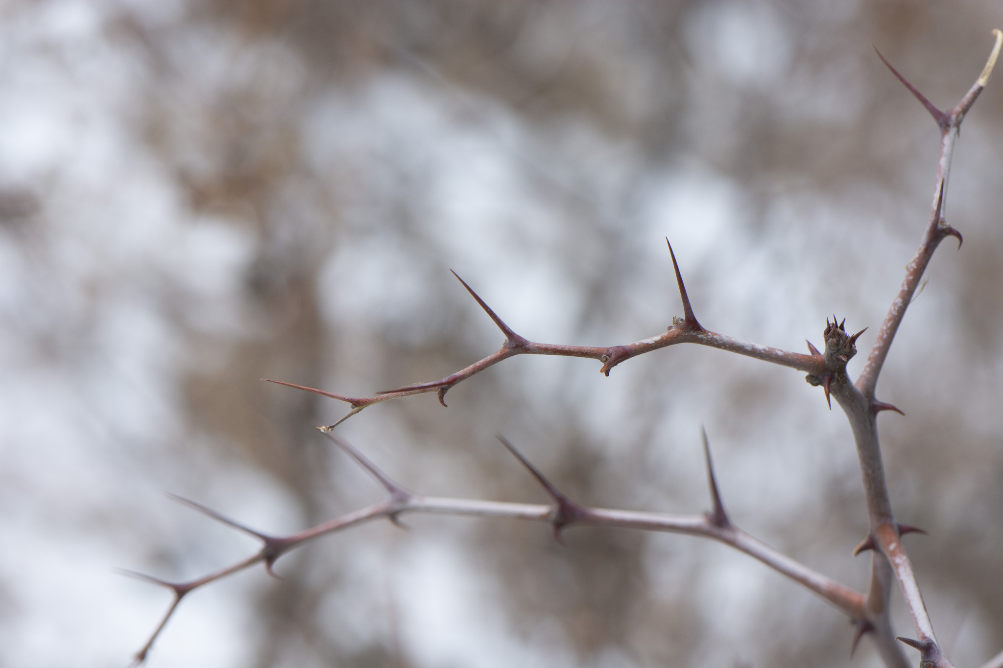 Stengel bzw. Stamm: Dorniger Strauch mit rutenförmigen Ästen und fast zweizeiligen,