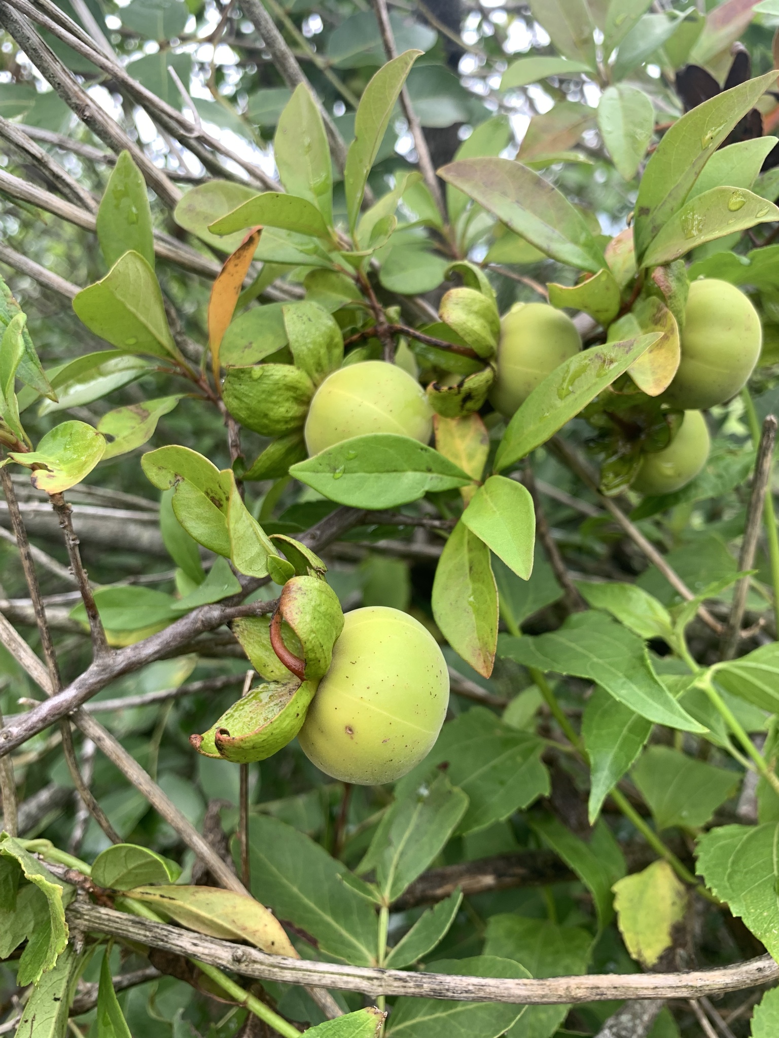 Englisch: Black Root, Blue Bush, Bluebush Star Apple, Eastern blue-bush, Monkey Plum, Red star-apple, Red star apple, Star apple