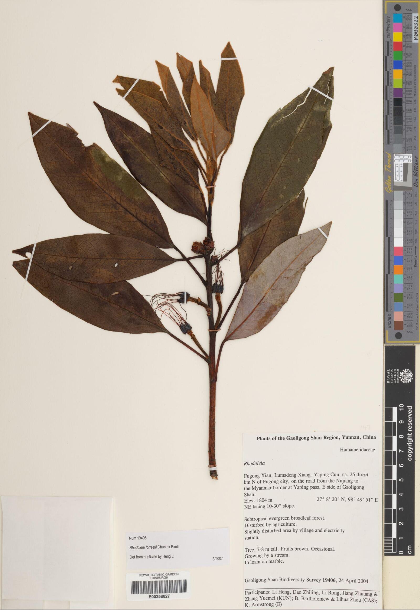 : - Rhodoleia forrestii Chun ex Exell