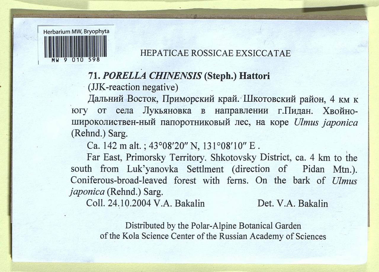 : - Porella chinensis (Steph.) S.Hatt.