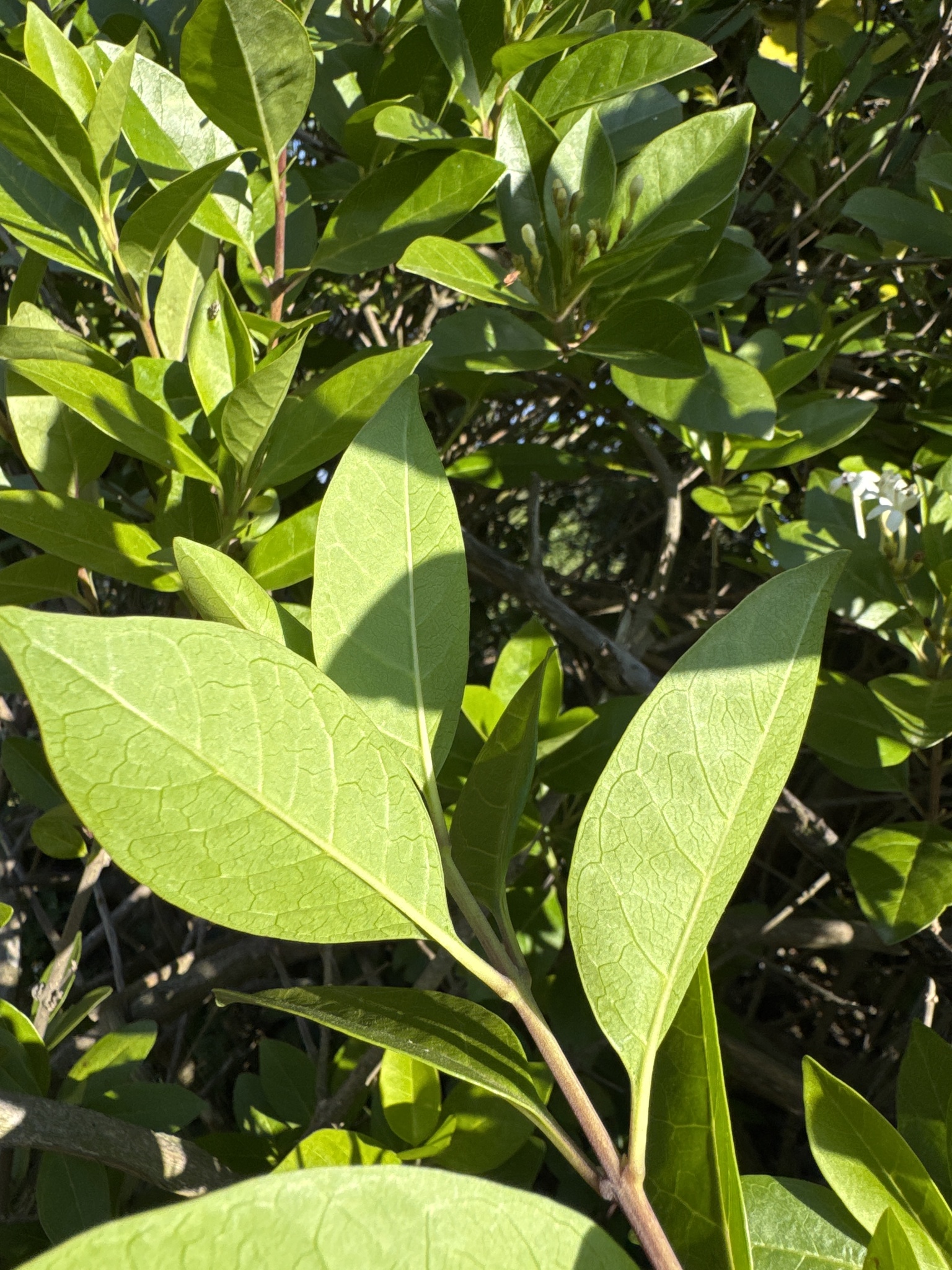 Englisch: Garden quinine, Sorcerers Bush, Wild Jasmine, شمشاد اهوازی, embrert