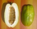 Frucht bzw. Samen: grün oder violett, bis zu 30 cm lang und 20 cm dick.