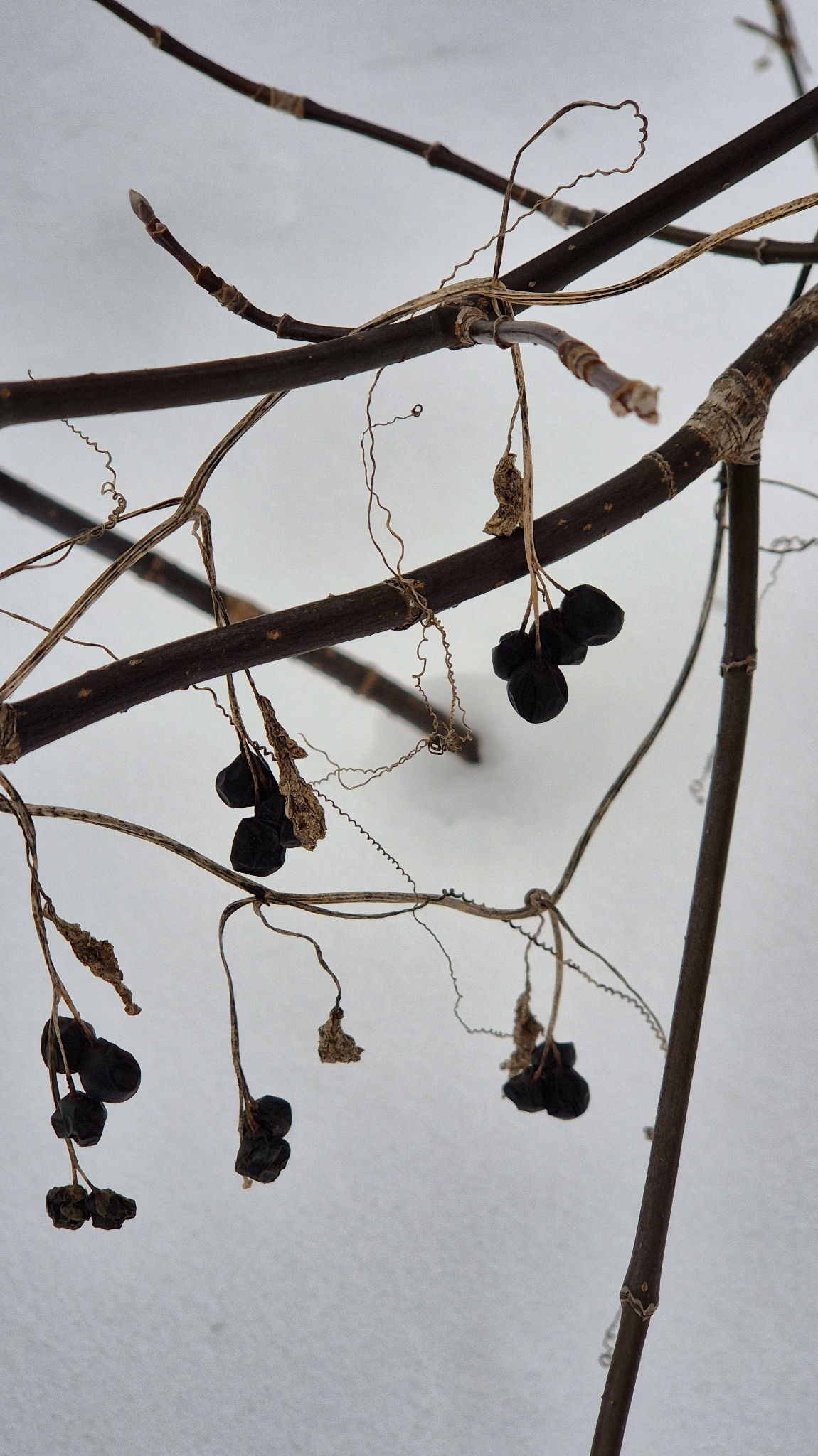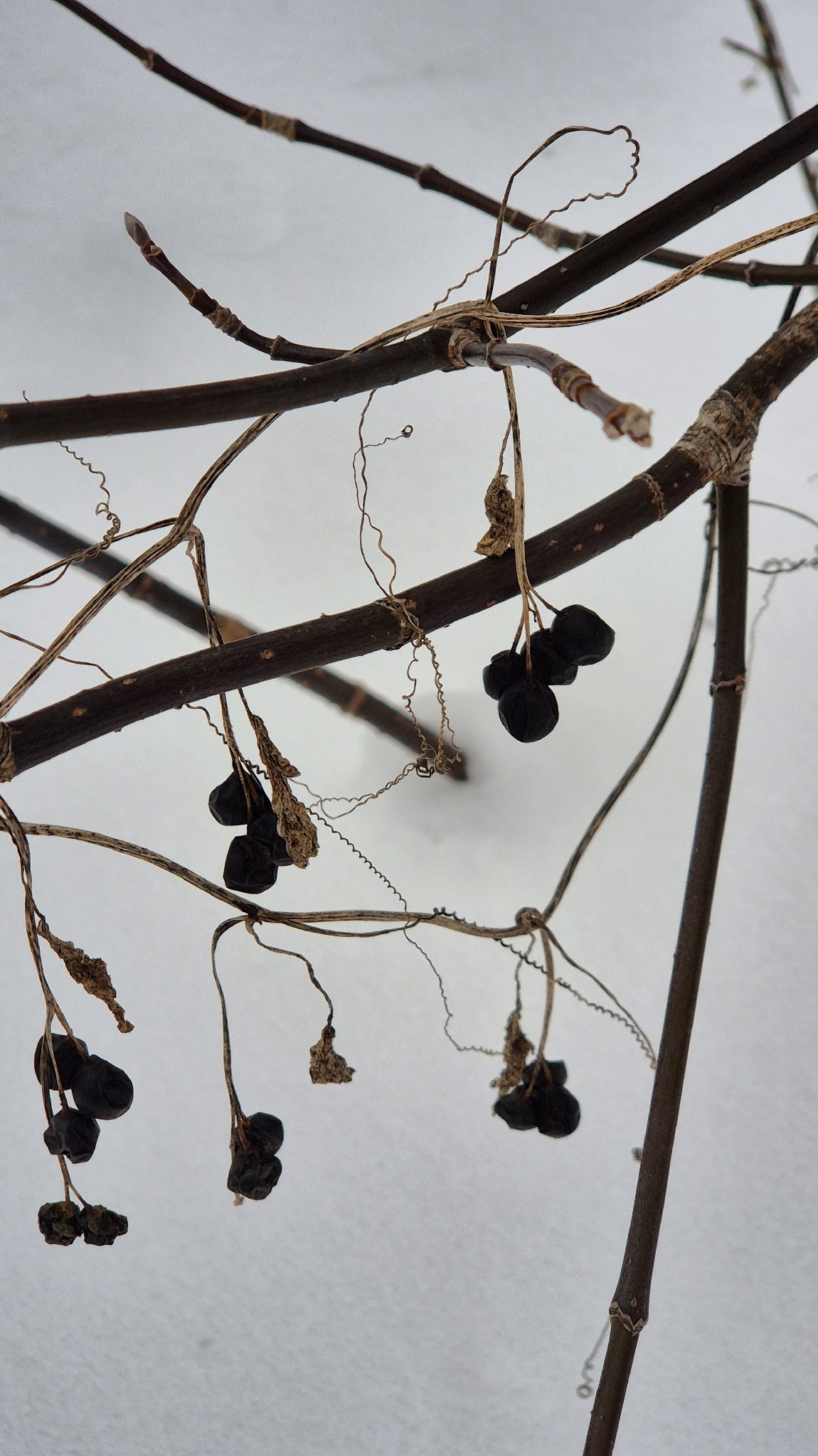 Frucht bzw. Samen: Beeren schwarz, kugelig, 7-8 mm im Durchmesser; Samen blassbraun, rötlich oder zimtbraun, manchmal graubraun, dünn gerippt, mit schmalem Rand,